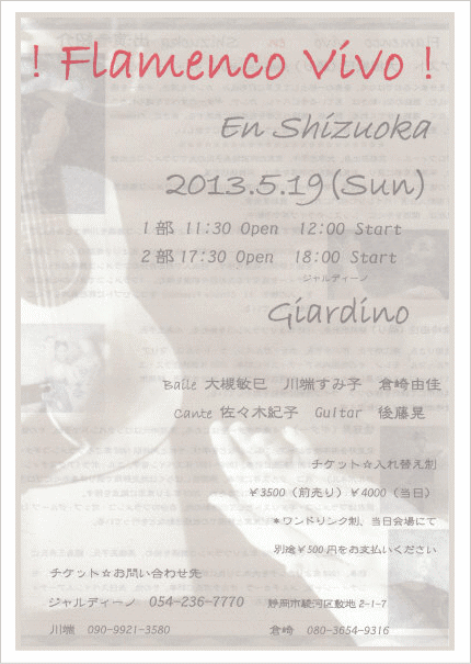 [出演] カンテ:須田隆久、ギター:今田央、 バイレ:尾方晶子、落合ゆかり、倉ア由佳